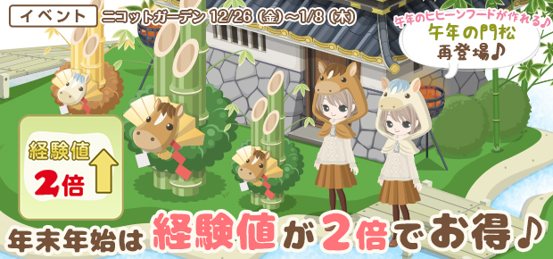 【開始】午年の「門松」入荷・収穫時の経験値が2倍