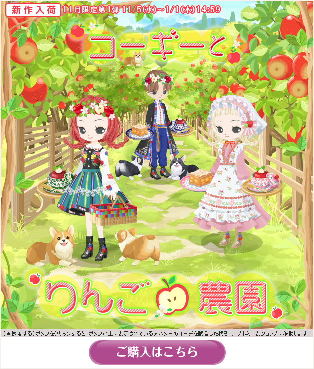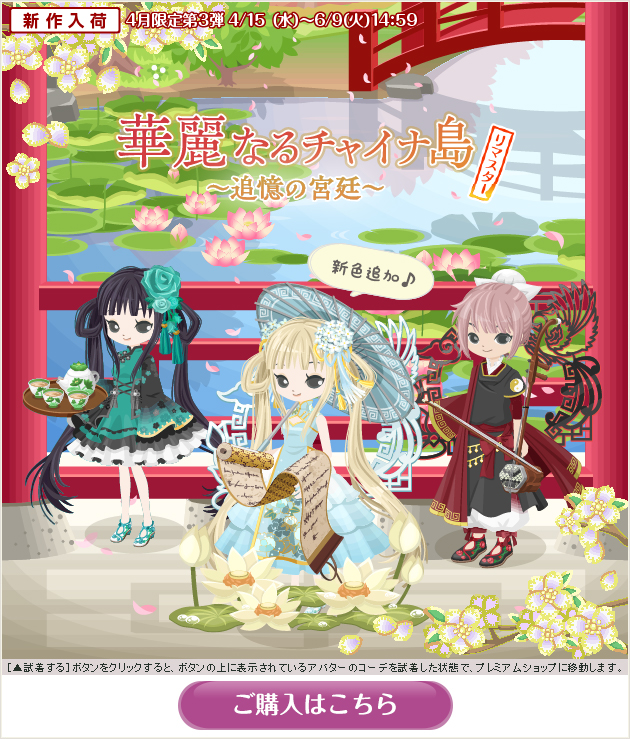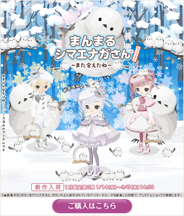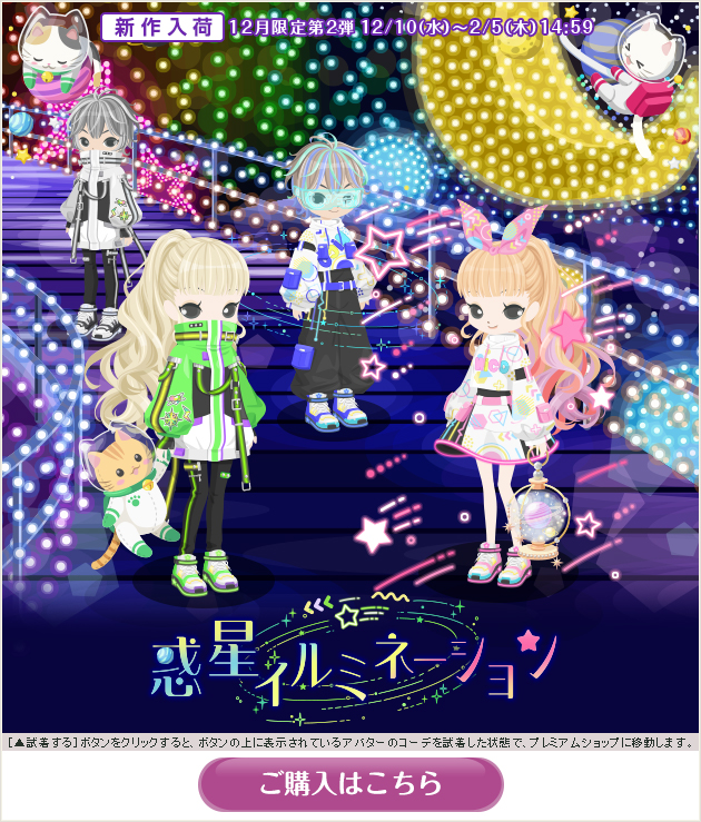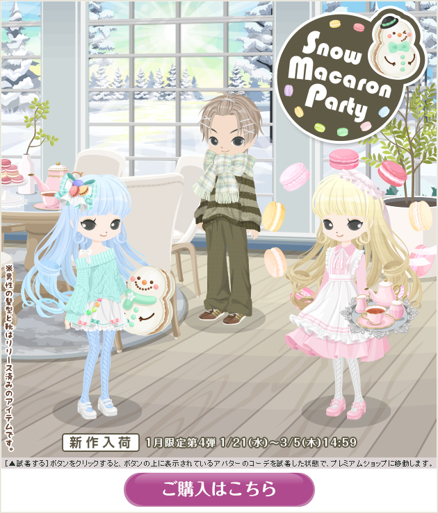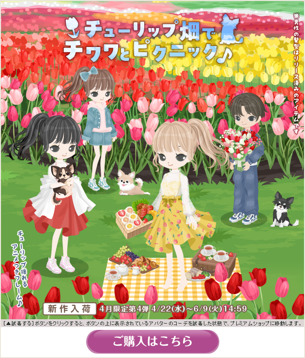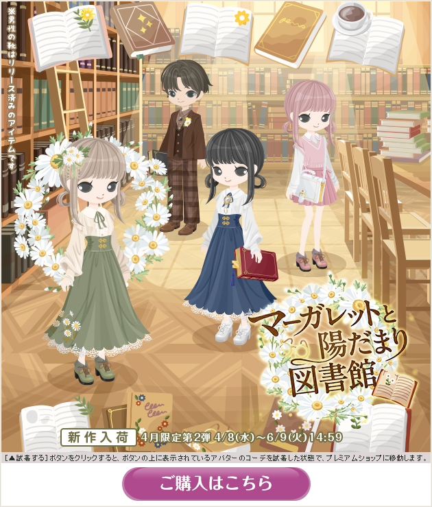 ※画像内のコーディネートには、無料ショップで取り扱っているアイテムや、販売期間外のアイテムが含まれていることがありますので、「このコーデを試着」ボタンをクリックしても、完全に画像と同じコーディネートにはならないことがあります。